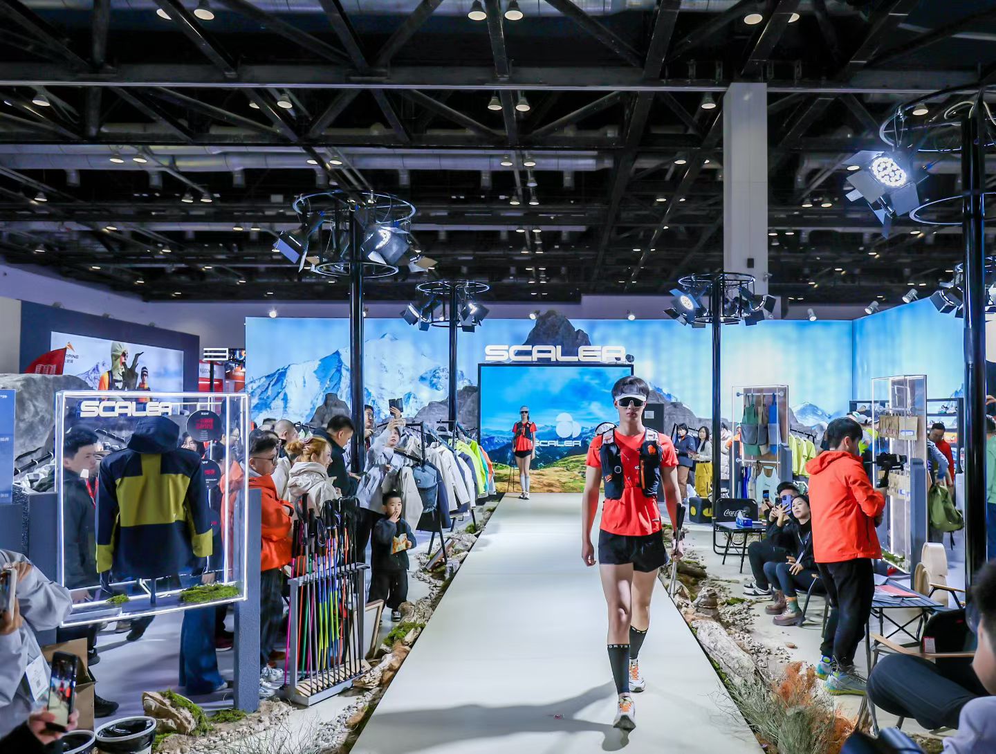 当日上午,思凯乐展台以一场别开生面的“全地形”装备风尚秀拉开序幕。模特身着品牌最新科技与设计理念融合的徒步装备,在动感的节奏中,演绎了思凯乐全系列装备的适用性,表达了户外装备不仅是功能的承载,更是户外爱好者探索自信与自在的生命伙伴,其设计始终服务于更安全、更舒适、更深入的自然体验。